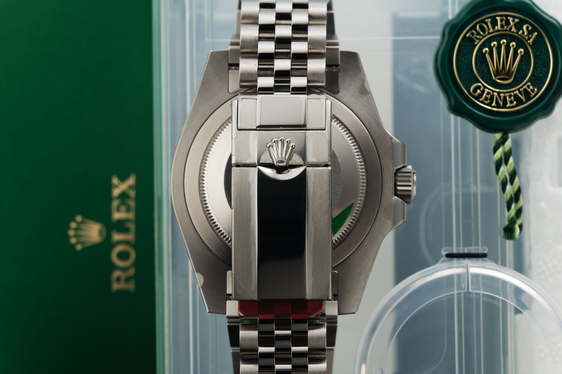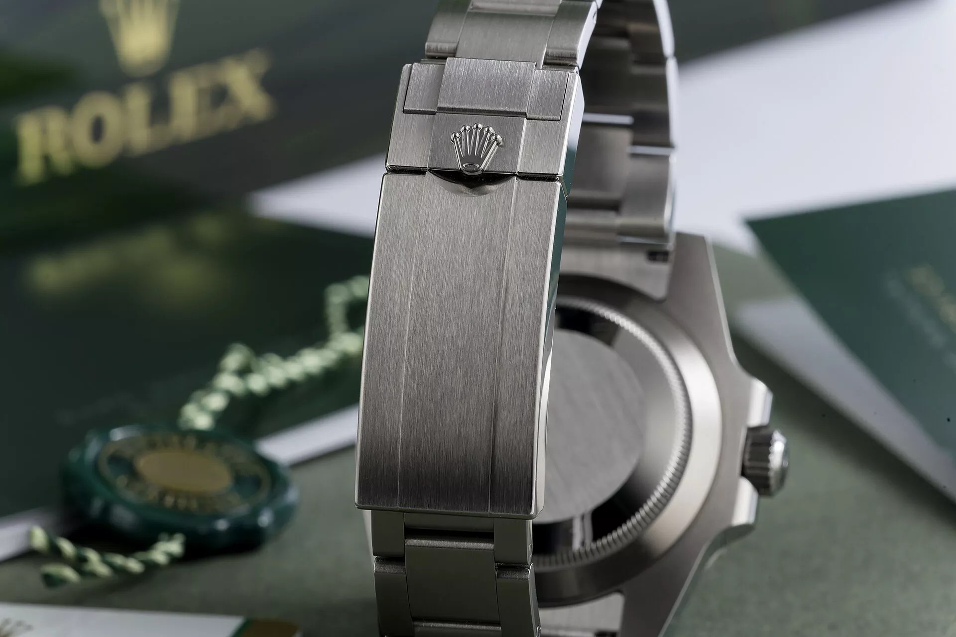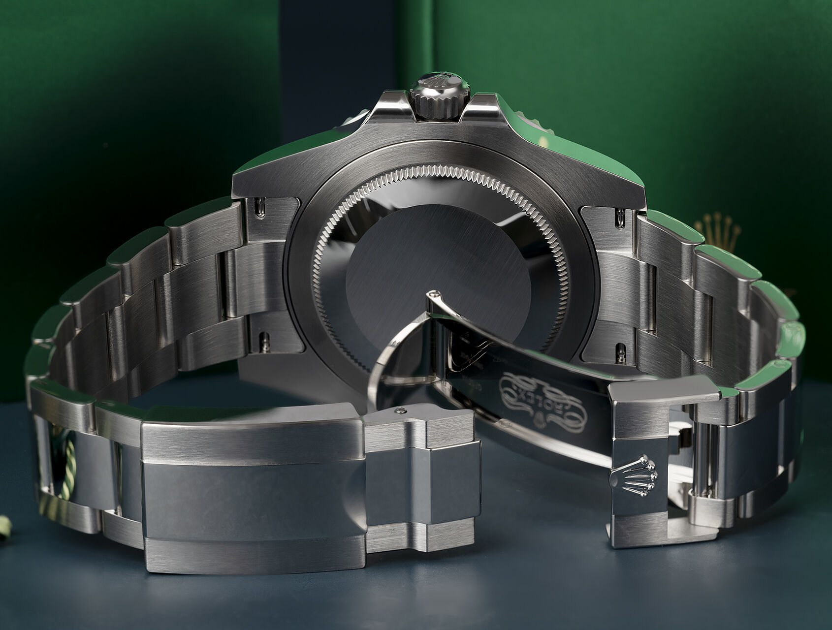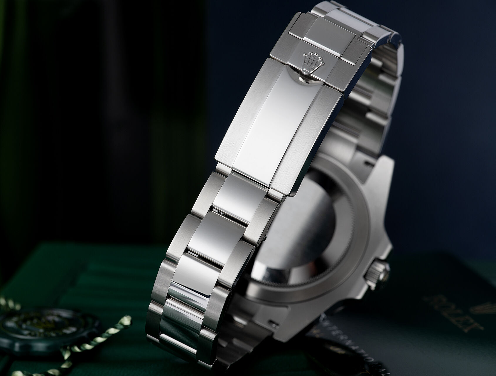 In 2022, Rolex reintroduced the iconic left-handed GMT, ‘Sprite,’ with a green and black Cerachrom bezel, powered by a self-winding dual-time calibre 3285, waterproof to 100m, and paired with a polished center-link Oyster bracelet.